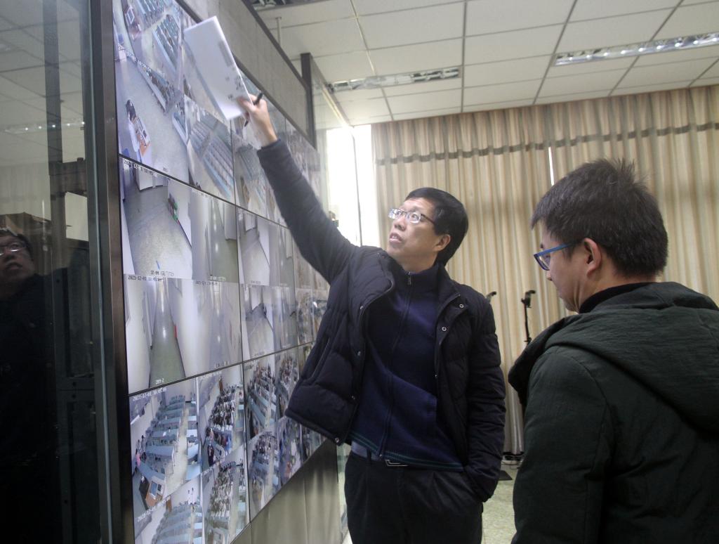 李朝晖一行实地查看了乐山考点入口、候场区、图书馆和行知楼考场、中控室、保密室。