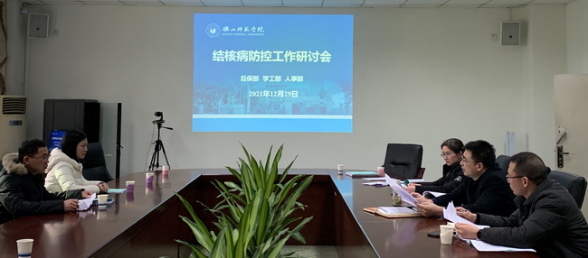 校医院院长向方桃首先从新生和教职工结核病体检项目、结核病新发病例及密切接触者筛查等方面汇报了2021年我校结核病防控情况。学工部副部长张波介绍了学生日常晨检、因病缺勤病因追查及登记和结核病防治知识宣传情况。