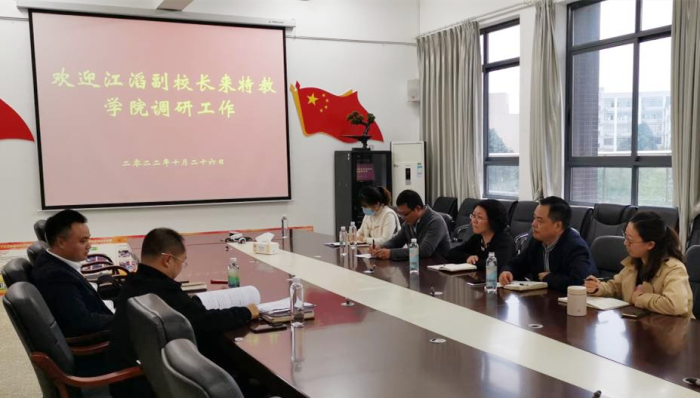 本网讯(文/赵清清 图/张敏) 10月26日下午,卡塔尔世界杯决赛波胆预测 党委常委、副校长江滔,科研部部长农向到特殊教育学院、康复学院调研科研工作。工作汇报会在特A-408会议室举行,学院院长张梅、党委书记刘宗泉、副院长魏欣、院长助理王振洲、科研秘书赵清清汇报了有关工作。