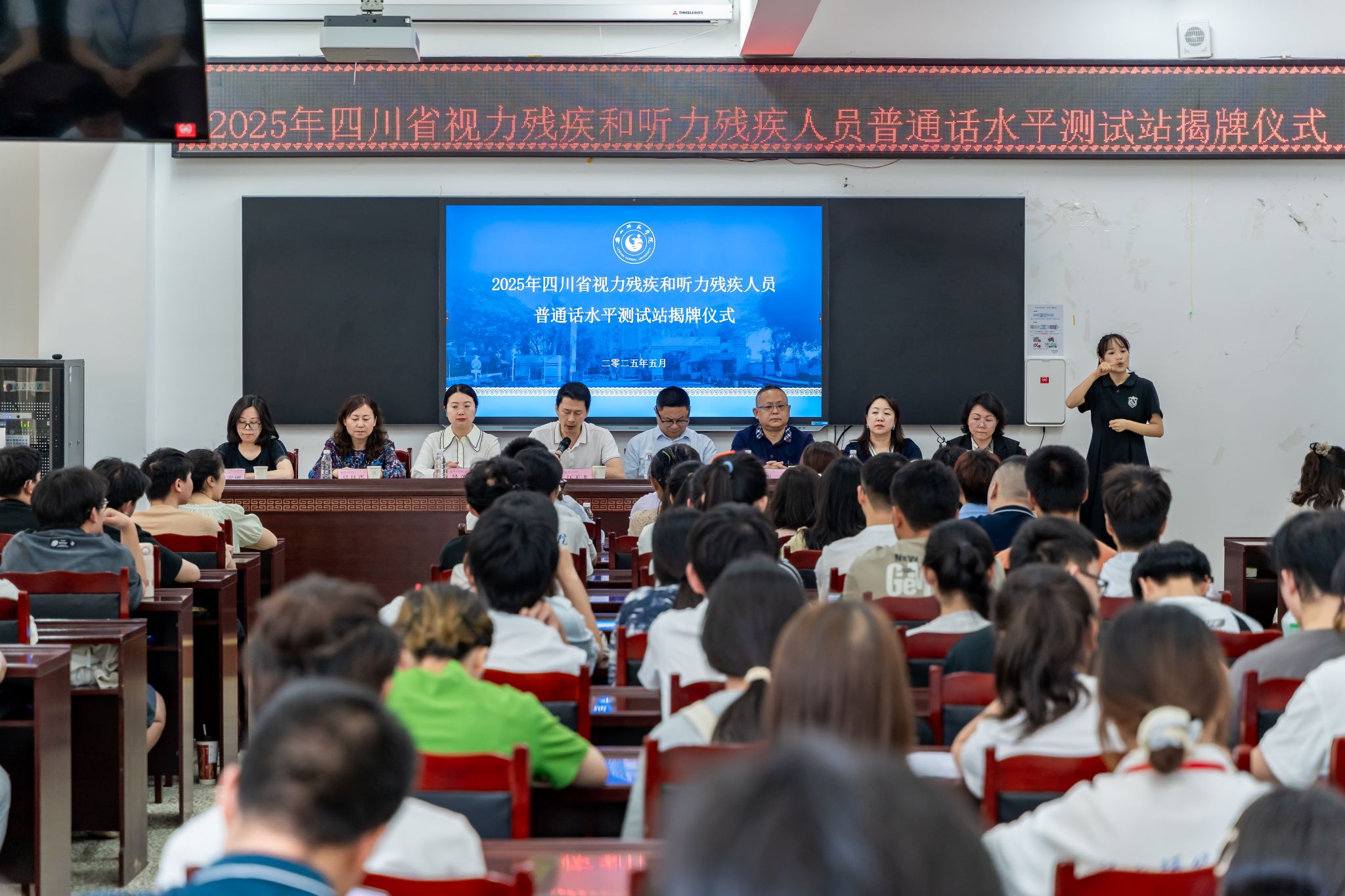 随后,与会人员参加了四川省视力残疾和听力残疾人员普通话水平测试站授牌仪式。