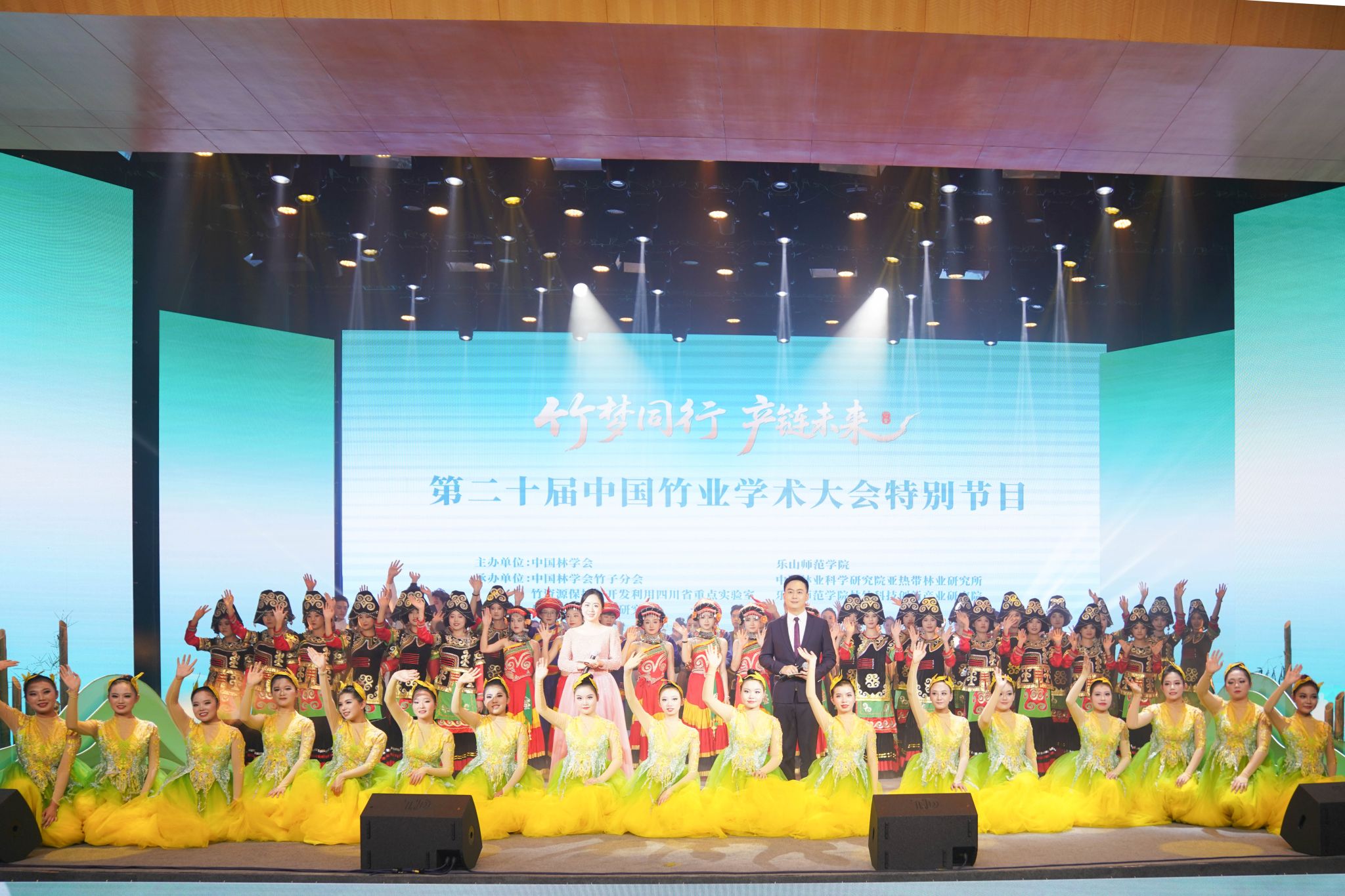 晚会分为“竹韵嘉州”“竹艺新承”“竹风艺彩”三个篇章。在舞蹈《青篁初醒》中拉开帷幕,演员们以灵动舞姿展现出竹子破土而出的蓬勃生机。随后,歌伴舞《翠竹吟》、民族舞蹈《朵洛荷》《阳光索玛》等节目轮番登场,将嘉州竹韵与地方民族文化巧妙融合;器乐演奏《在那遥远的地方》以悠扬旋律传递竹文化的雅致意境;晚会特别邀请星海音乐学院张帆教授演奏箫笛独白《峨眉飞雪》,展现了峨眉山的层峦叠嶂间,一场雪色与禅意的千年对谈。情景剧《竹石志》则以艺术化形式再现竹产业从业者的坚守与创新;特教学子带来的《海棠花开一路红》,以整齐划一的动作展现残障学子对美好生活的向往。最后,晚会在合唱《山水中国美》中落下帷幕,激昂的歌声与优美的伴舞将竹的生态之美、文化之韵与产业之兴融为一体。展现了卡塔尔世界杯决赛波胆预测 在竹资源保护与开发、竹产业创新研究及竹文化传承领域的扎实成果——卡塔尔世界杯决赛波胆预测 成功获批林业硕士点,建成“竹资源保护与开发利用”四川省重点实验室,近五年主动对接国家粮食安全、长江上游生态屏障建设与“天府森林四库”规划,累计承担国家级、省部级项目43项,年成果贡献超2亿元,持续为竹产业链优化升级与专业人才培育注入“乐师动能”。