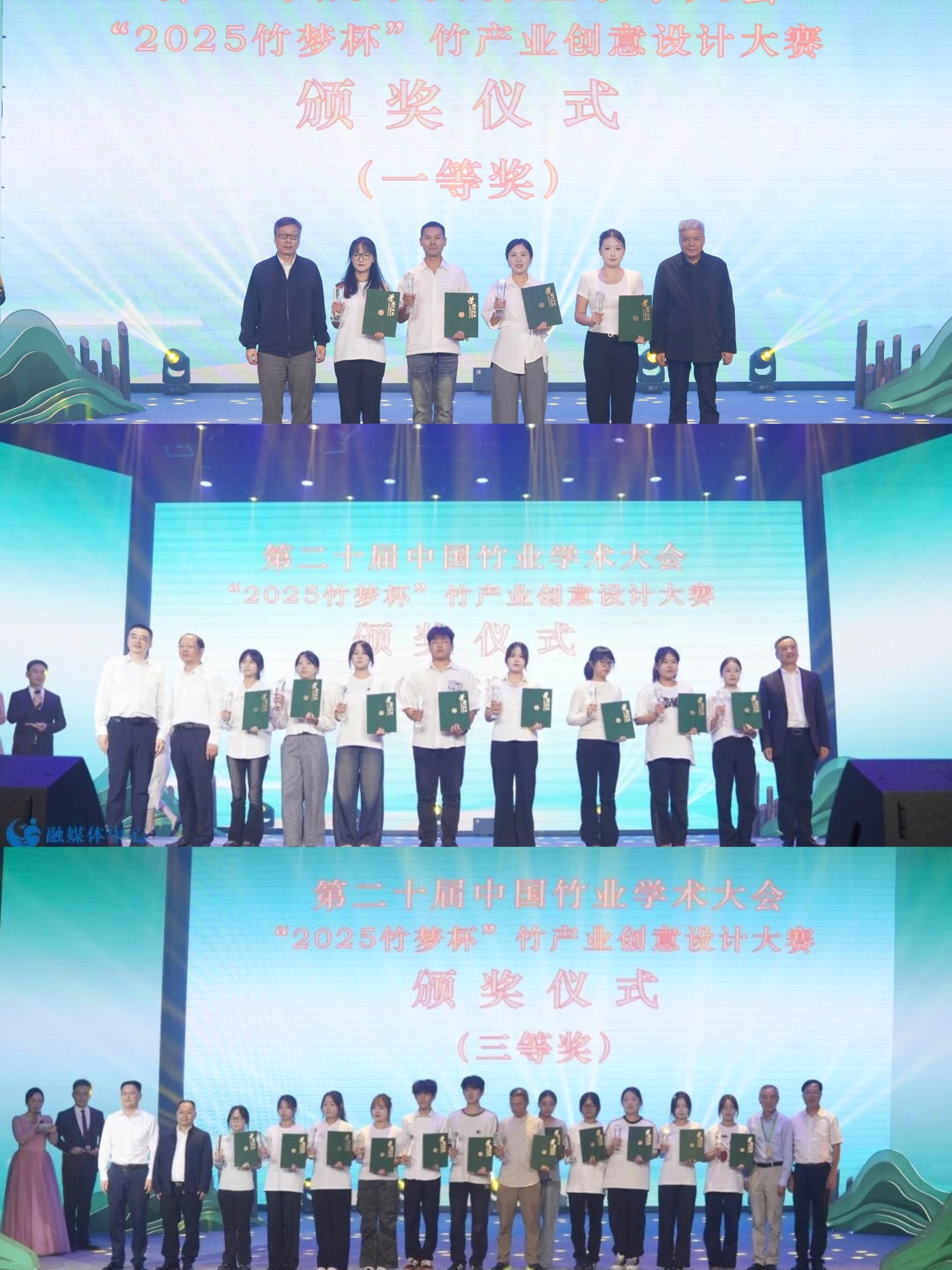 当晚,“竹梦杯”竹产业创意设计大赛结果揭晓,共产生概念组与企业组的一、二、三等奖共计24项。作品涵盖竹艺设计、IP形象、包装创意、空间装饰等多个方向,展现了竹材在当代设计中的多元应用与创新活力。