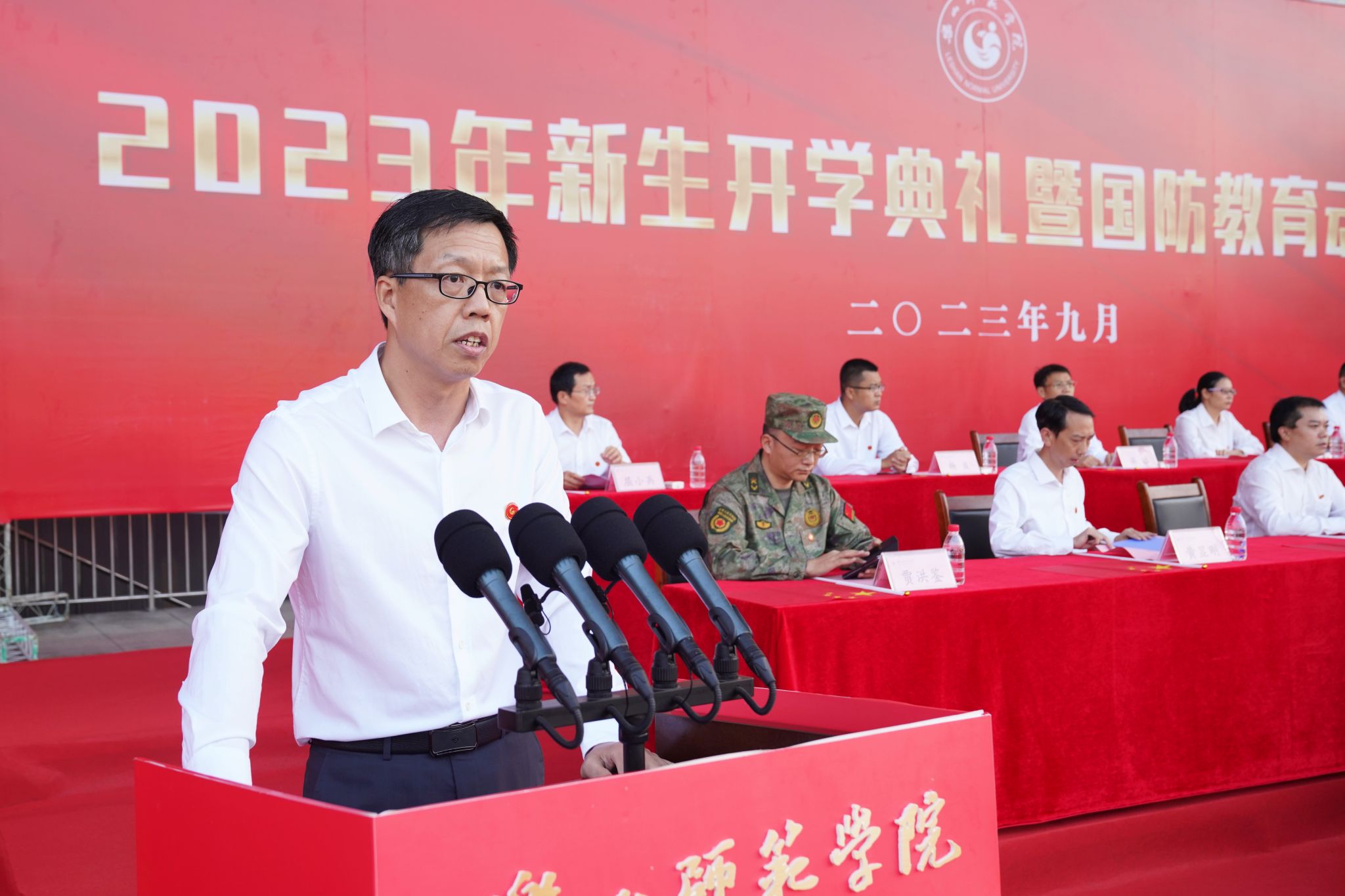 刘进代表全校师生员工祝贺2023级新同学逐梦乐师,开启大学新征程。他表示,这个时代必将把你们塑造得更加自信、更加自强,更富创新思维、更富探索精神。你们必将成为乐师继往开来的生力军。