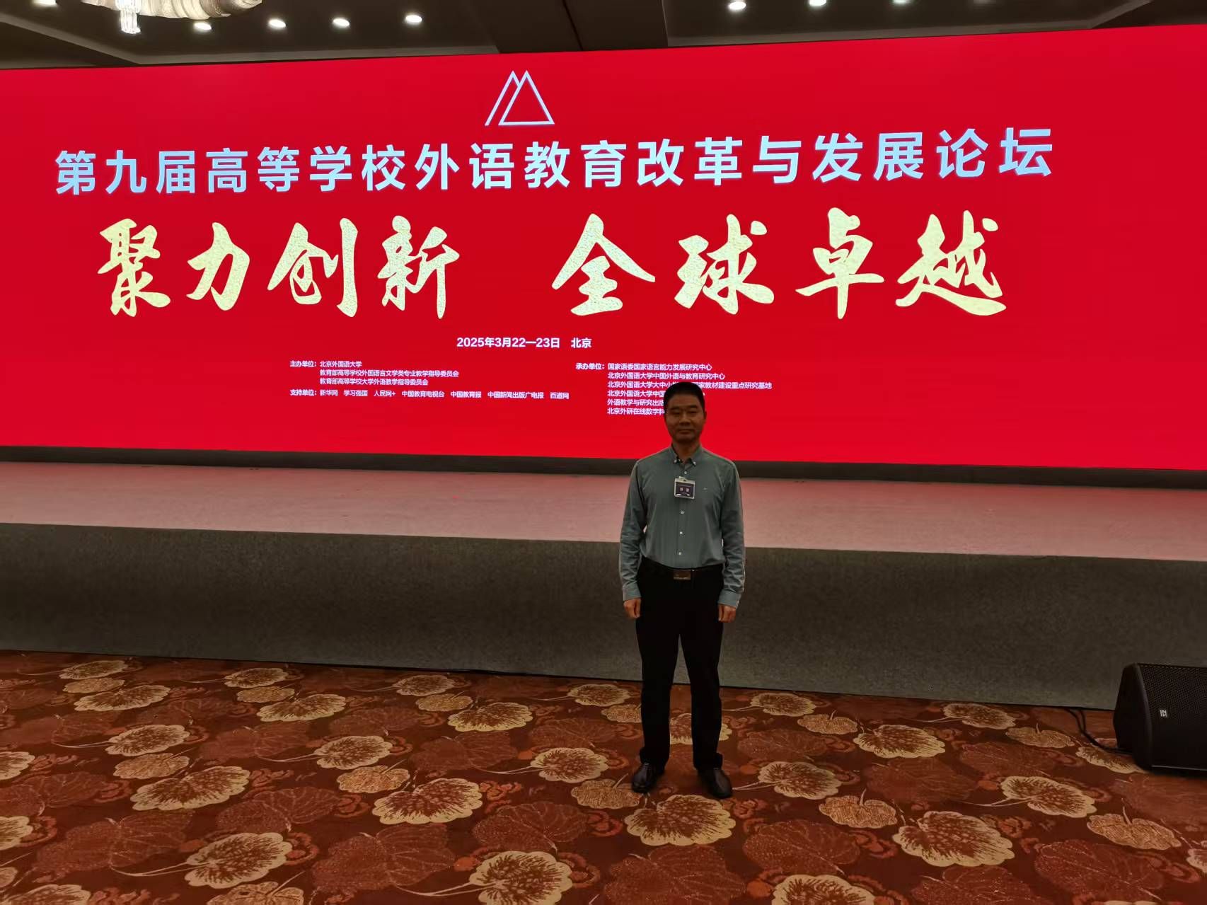 本网讯(文图/徐波 )3月21日至23日,第九届全国高等卡塔尔世界杯决赛波胆预测 外语教育改革与发展高端论坛在北京隆重举行。本次论坛以"聚力创新 全球卓越"为主题,吸引了来自全国高校外语教育领域的专家学者、教师代表及行业同仁2200余人参会。我校外国语学院徐波教授参会,围绕外语教育数字化转型、智能驱动的高校外语教学生态等前沿议题与参会代表展开深入交流。