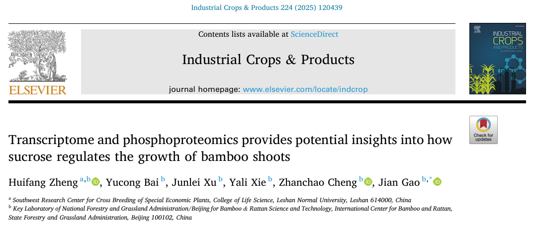 本网讯(文、图/郑慧芳)近日,我院郑慧芳博士与国际竹藤中心高健研究员团队合作发表在国际知名期刊《Industrial Crops & Products》(中科院1区TOP,IF=6.2)上的研究论文入选ESI全球前1%高被引论文(论文链接:https://doi.org/10.1016/j.indcrop.2024.120439)。该研究首次通过转录组与磷酸化组联合分析,从基因表达与蛋白质修饰层面揭示了蔗糖调控毛竹笋快速生长的分子机制,为竹子生长调控研究提供了新视角。