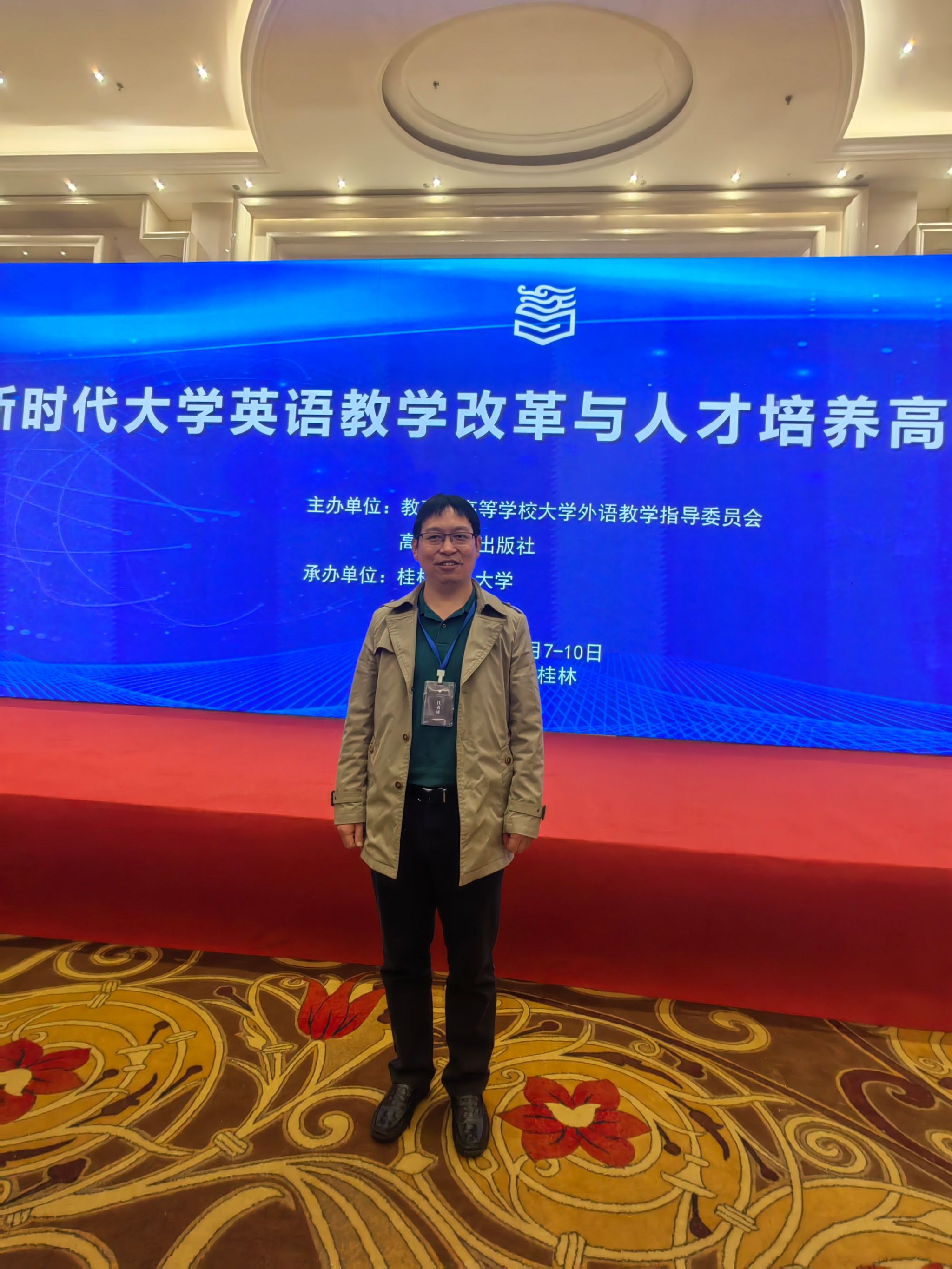 本网讯(文/图 陈开富)4月7日-10日,由教育部高等卡塔尔世界杯决赛波胆预测 大学外语教学指导委员会、高等教育出版社主办的“新时代大学英语教学改革与人才培养高端研讨会”在广西桂林举行,外国语学院副院长陈开富参加了大会。