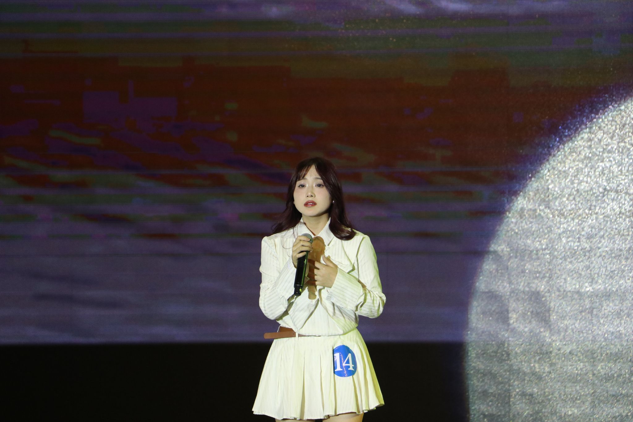 决赛现场,耳熟能详的歌曲被选手们精彩演绎,14号选手李晓芳声情并茂地演绎《流浪记》、11号选手曲别王芳一首《不要怕》余音绕梁、1号选手李婷带领乐队自弹自唱《我在人民广场吃着炸鸡》将整场比赛点燃起来,《蝴蝶夫人》通过男女对唱带领观众穿梭记忆时空,3号选手身着华丽的晚礼服深情演唱《我》,永远期待明天,永远相信奇迹总会发生—9号选手朱镜磊真诚细腻表达《十二月的奇迹》,8号选手岳子馨用一首《阿刁》告诉现在正在努力的同学们—你终会看到灿烂的阳光为你铺满,鲜花为你绽放!选手们演唱歌曲类型丰富,以出色的舞台表现力点燃了观众的热情。他们用空灵清澈的歌声向在场的观众展示了大学生对当前生活的热爱和对美好未来的向往,用饱满的歌声生动地诠释了在奋斗中砥砺前行的意志。