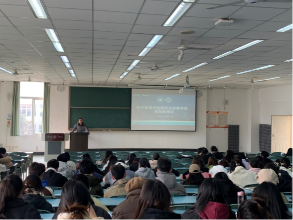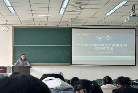 本网讯(文图/陈玉婷)为帮助经济管理学院全体学生全面回顾本学期学习成果,做好考前准备以及为即将到来的假期提供安全教育,12月26日至29日,经济管理学院召开了各年级期末总结暨考前、假前教育会,并由经济管理学院各年级辅导员主持会议。