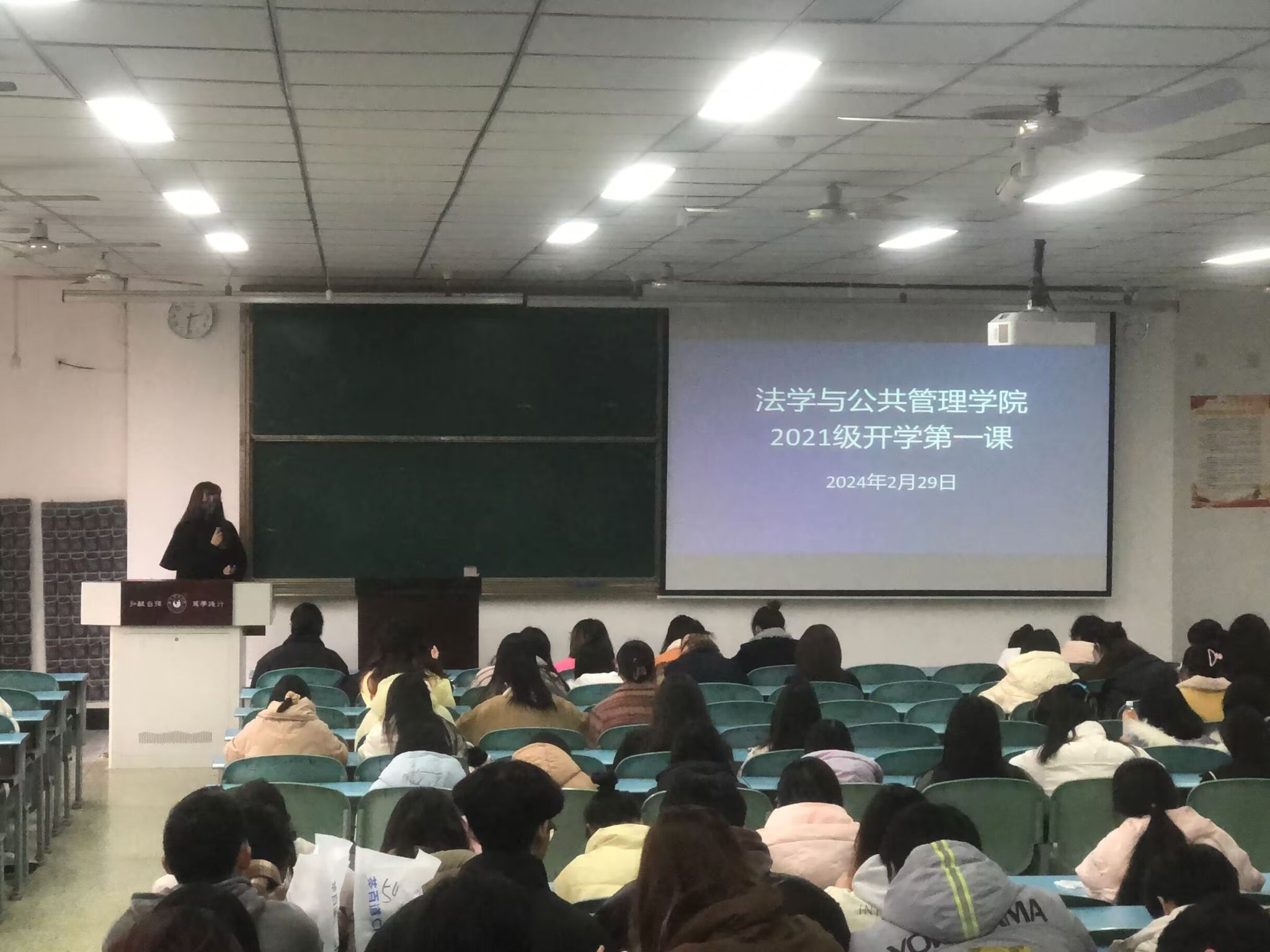 本网讯(文/江琳 图/何叶、许若星、江琳)2月27日-3月4日,法学与公共管理学院分年级、分班级开展春季学期“开学第一课”,法管学院全体辅导员,全体法管学子共同参与。