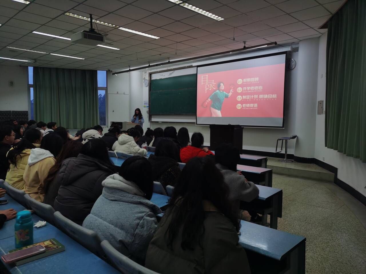 在课上,辅导员们分别以“热辣滚烫 无畏向上”“新学期 新起点”等为主题,围绕假期回顾、开学收心、制定计划并明确目标、校园安全教育、身心发展等方面进行教育引导,提醒同学们在尽快转变生活与学习状态的同时,鼓励同学们踔厉奋发、不断进步,在新学期勇敢选择“乘风破浪”,叮嘱同学们不忘关注个人身心健康,应培养积极好心态、练成健康好体魄。