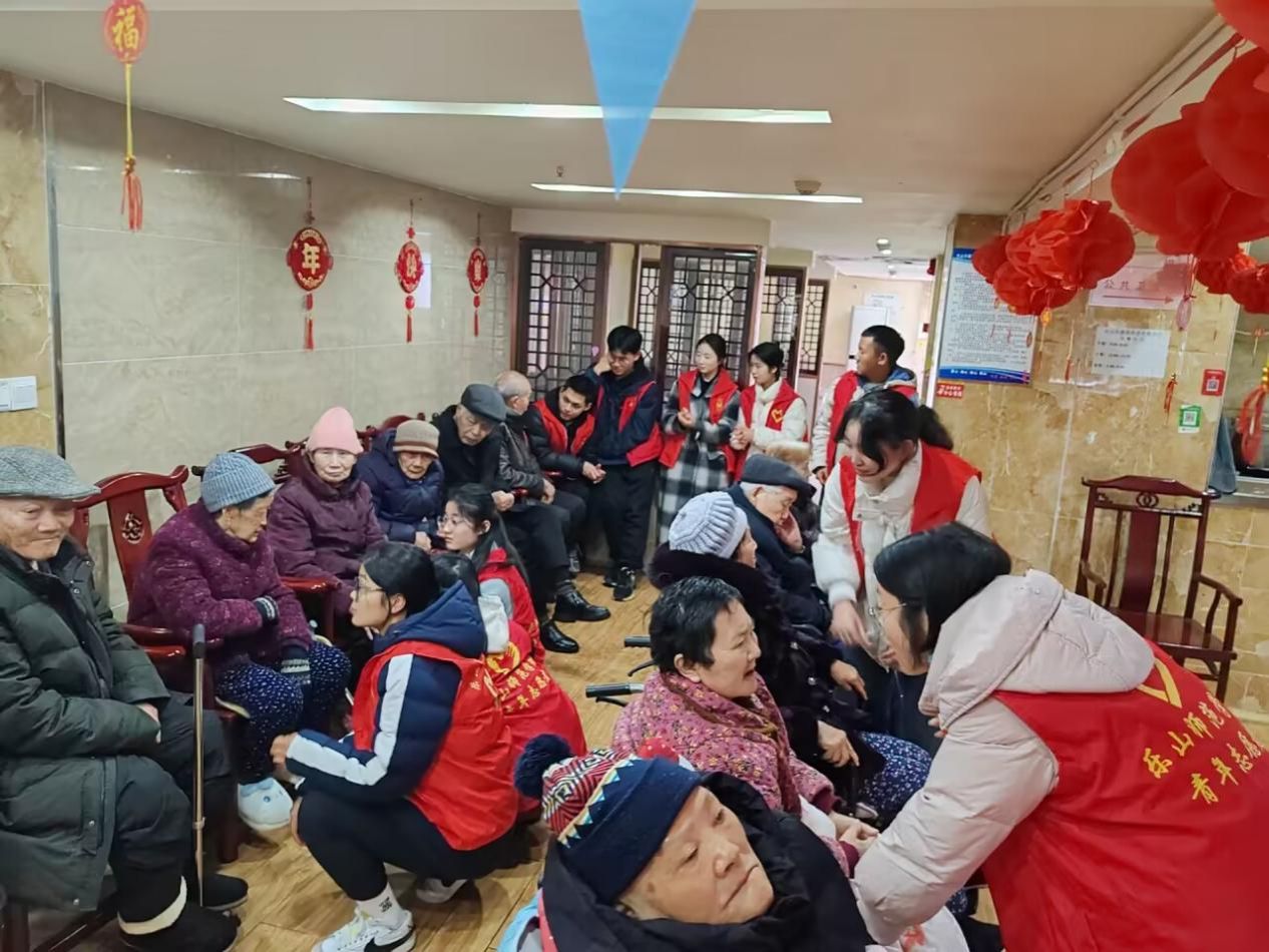 “我们选择牵着他们的手,默默陪伴在他们身旁,哪怕只是眼神交流,我们也能感受到爷爷奶奶们内心洋溢的幸福感”。在乐山市嘉苑养老院,不少老龄朋友有视听或者智力障碍,加之儿女常年不在身边,变得愈发孤独与自闭,更无法顺利和志愿者们沟通,但志愿者们对部分特殊的长者们采取“扮演其子女”的陪护模式,用真心拉近彼此距离。