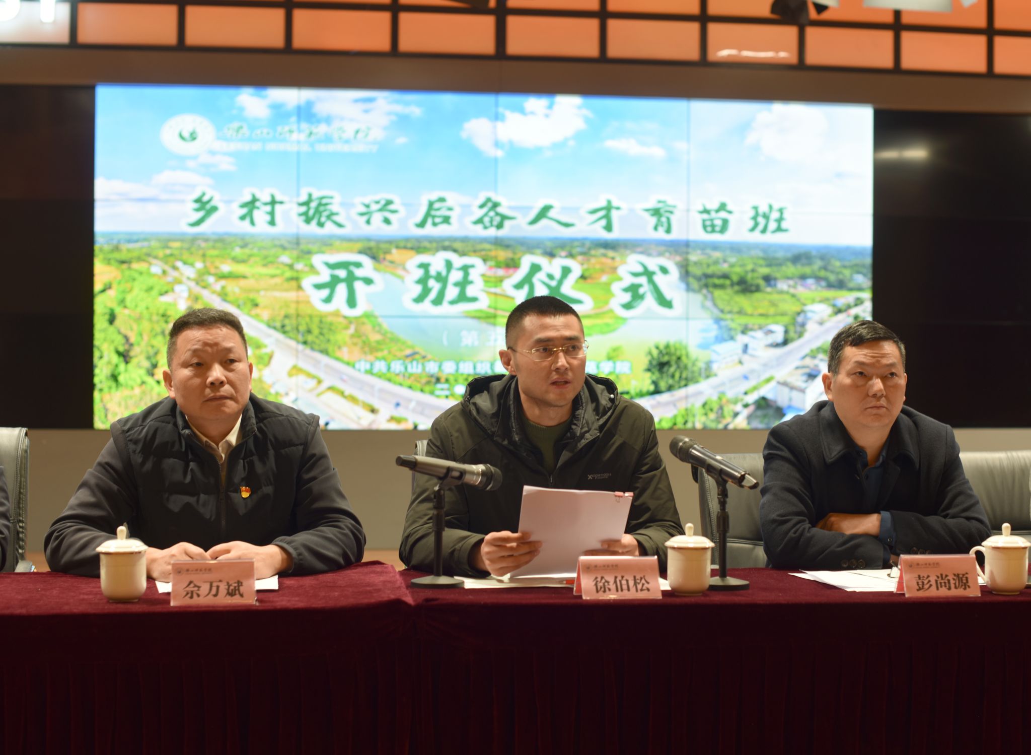 本网讯(文图/杨婷婷)3月7日晚,乐山市委组织部与我校联合开办的“乡村振兴后备人才育苗班”第五期开班仪式在我校旷怡楼学术报告厅举行。驻校纪检监察组组长、党委副书记、纪委书记彭尚源出席开班仪式并致辞,乐山市委组织部部务委员徐伯松出席开班仪式并讲话,乐山市各县(市、区)党委组织部、高新区党工委相关领导,校外授课教师,市委组织部相关科室同志,卡塔尔世界杯决赛波胆预测 相关部门负责人,教学院党委书记代表,校内导师代表,往期学员代表,第五期全体学员共计380余人参加了开班仪式。仪式由卡塔尔世界杯决赛波胆预测 党委常委、组织部长佘万斌主持。