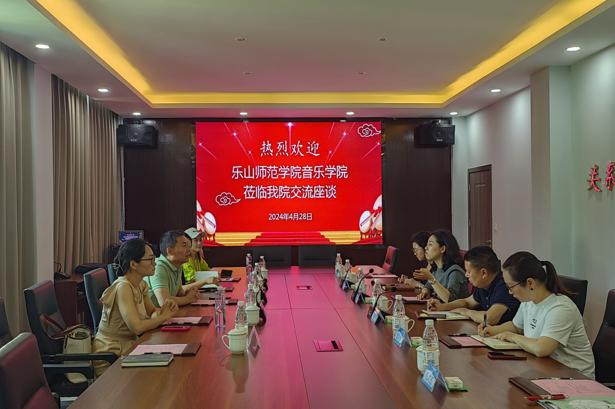 本网讯(文图/周琼怡)4月28日上午,音乐学院组织部分教师代表前往乐山市未成年人心理健康辅导中心开展调研工作。乐山市精神病院党总支书记、乐山市未成年人心理健康辅导中心主任徐霞,乐山市精神病院副院长邹建华及医生代表,音乐学院党委书记宋军,音乐学院党委副书记、纪委书记余友情及学院部分教师代表参加有关活动。