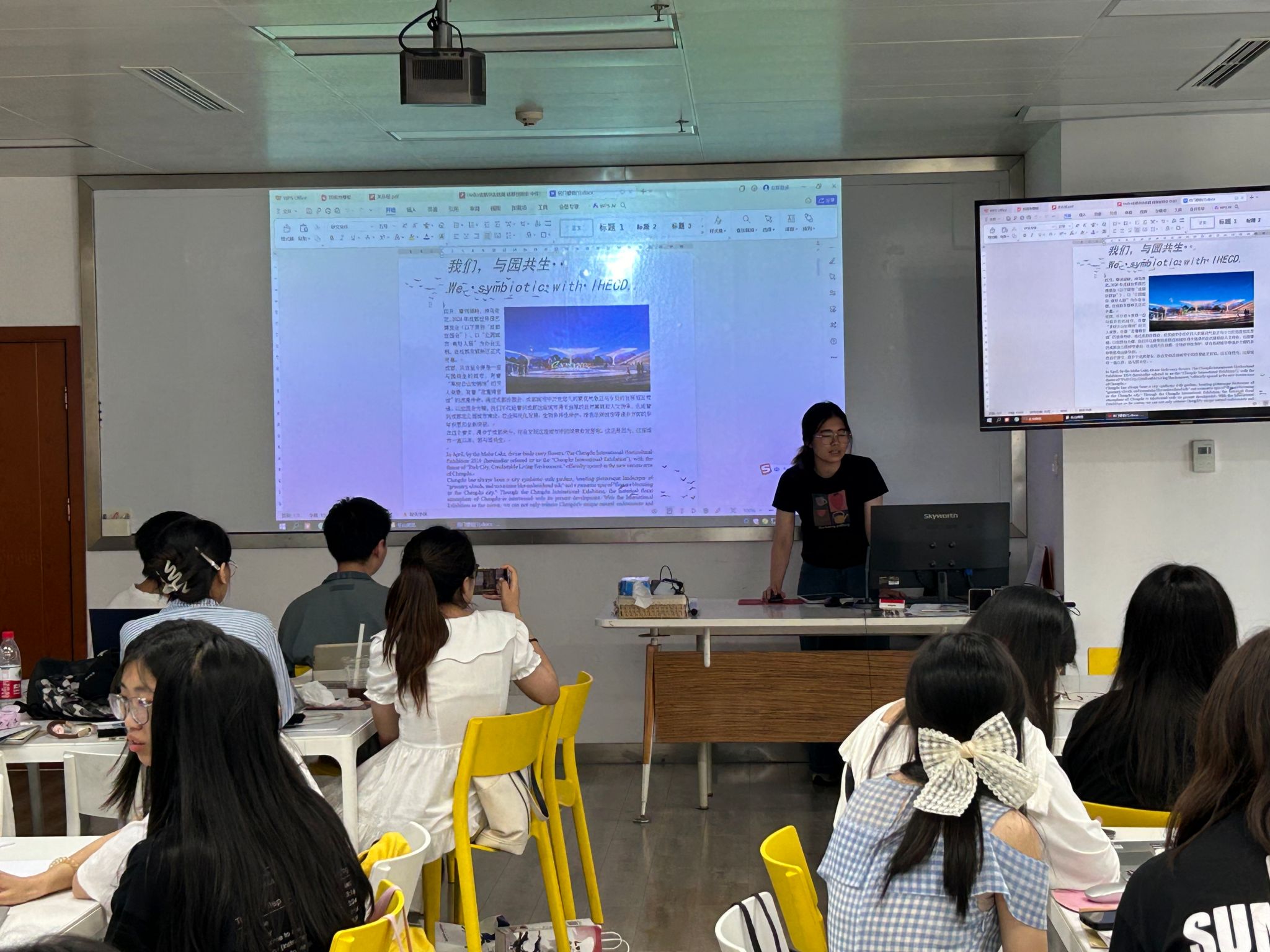 李芙瑶老师介绍了几项新兴翻译技术,主要分为四类:文本和文档自动翻译、多模态数据自动翻译、云端协同平台、AI大语言模型。李老师指出AI技术的广泛运用能提高工作效率,同时也存在诸多挑战,如大语言模型的幻觉(hallucinations)问题、大语言模型对非英语语言的语义理解问题等。王茜老师以EFIGS和CJK主流游戏本地语言引入了游戏本地化的概念,讲授了游戏文本的题材、类型、功能,通过举例当今不同流行游戏中英对照的翻译界面,重点强调不同游戏文本的翻译内容和技巧方法。熊婧岚老师指导大家按照项目管理角色分为四组,选定项目经理、译员、审校和编译完成《Hello成都杂志》编译实践项目。同学们组间互评后,编辑部专家蒋吉媛对各小组成果进行点评,针对大家的疑惑,提出了指导意见。马鑫老师对同学们所提及的岗位依次进行点评和分析,就职业发展路径提出了新的思考。