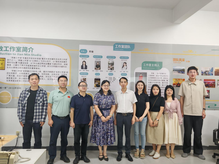 随后,我校党委学生工作部一行人来到西南政法大学“同舟简敏工作室”,工作室负责人简敏教授首先就工作室的成立背景、组织架构、工作理念及特色活动等方面进行了全面介绍,并着重解读了“四组一营”的项目制工作模式和“1+N+X”的运行模式。她表示,辅导员工作室作为思政教育与辅导员培养的重要阵地,需要把平凡的工作做细做实做好,不断提升辅导员的专业素养和工作能力,力争做好学生的“经师”与“人师”,为学生成长成才提供有力支持。