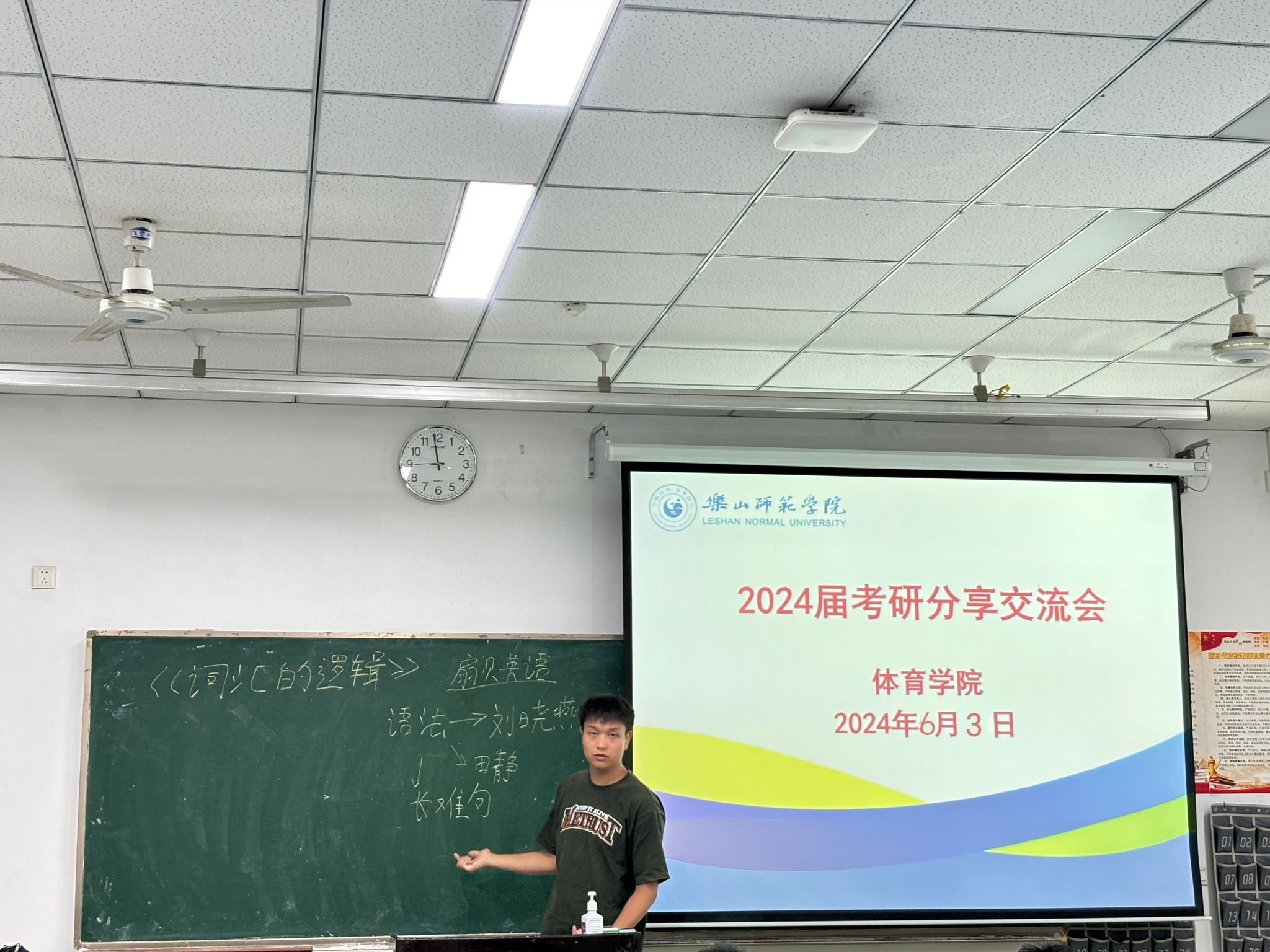 本网讯(文/吴毅 图/安玲)为进一步做好2025届毕业生考研工作,体育学院于6月3日,在行知楼108教室成功举办了2024届考研分享交流会。2024届成功上岸的学生代表、2025届准备考研的同学参加此次分享交流会,会议由体育学院学生管理办公室主任关光富主持。