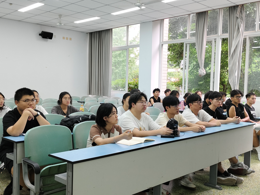 本网讯(文/罗代丽 图/李佳怡)为了提升同学们对平面广告设计的认识与兴趣,拓展专业视野,6月6日下午,经济管理学院在行知楼109教室开展了“平面广告设计的构图与色彩”专题讲座。本次讲座由经济管理学院督导詹虎教授主讲,23级工程造价专业同学参与了本次讲座。