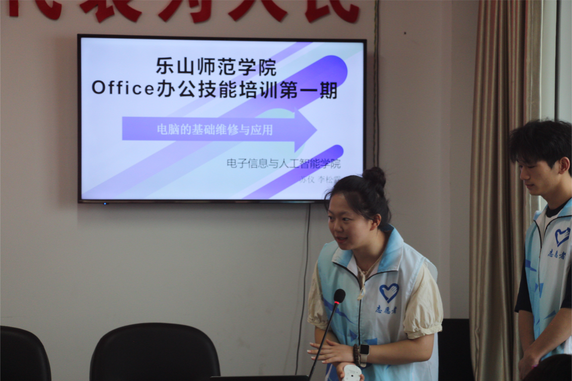 本网讯(文/郭正兴,图/明爽)7月5日,电子信息与人工智能学院在沐川县张村村村委会二楼会议厅举办了第一期Office办公技能培训课程以及配合教师教育学院驻村第一书记资飞的工作,协助其录制党课内容。本次培训旨在提升村民的信息化办公能力,让他们能够更好地适应现代社会的发展需求。