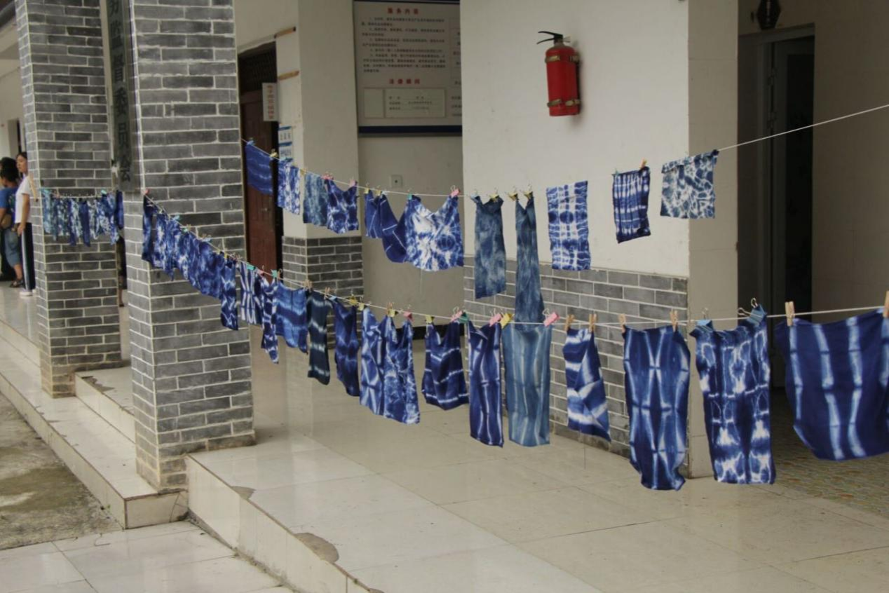 随着讲解的深入,一行人移步至小院。这里,九个小分队迅速集结,每一队都像是即将出征的勇士,满怀信心地投入到扎染的创作中。小手与布料、线绳共舞,每一次穿梭都蕴含着孩子们对美的追求与想象。不久,一幅幅充满童趣与创意的扎染作品便展现在众人眼前,它们不仅是孩子们纯真梦想的缩影,更是对美好未来的无限憧憬。