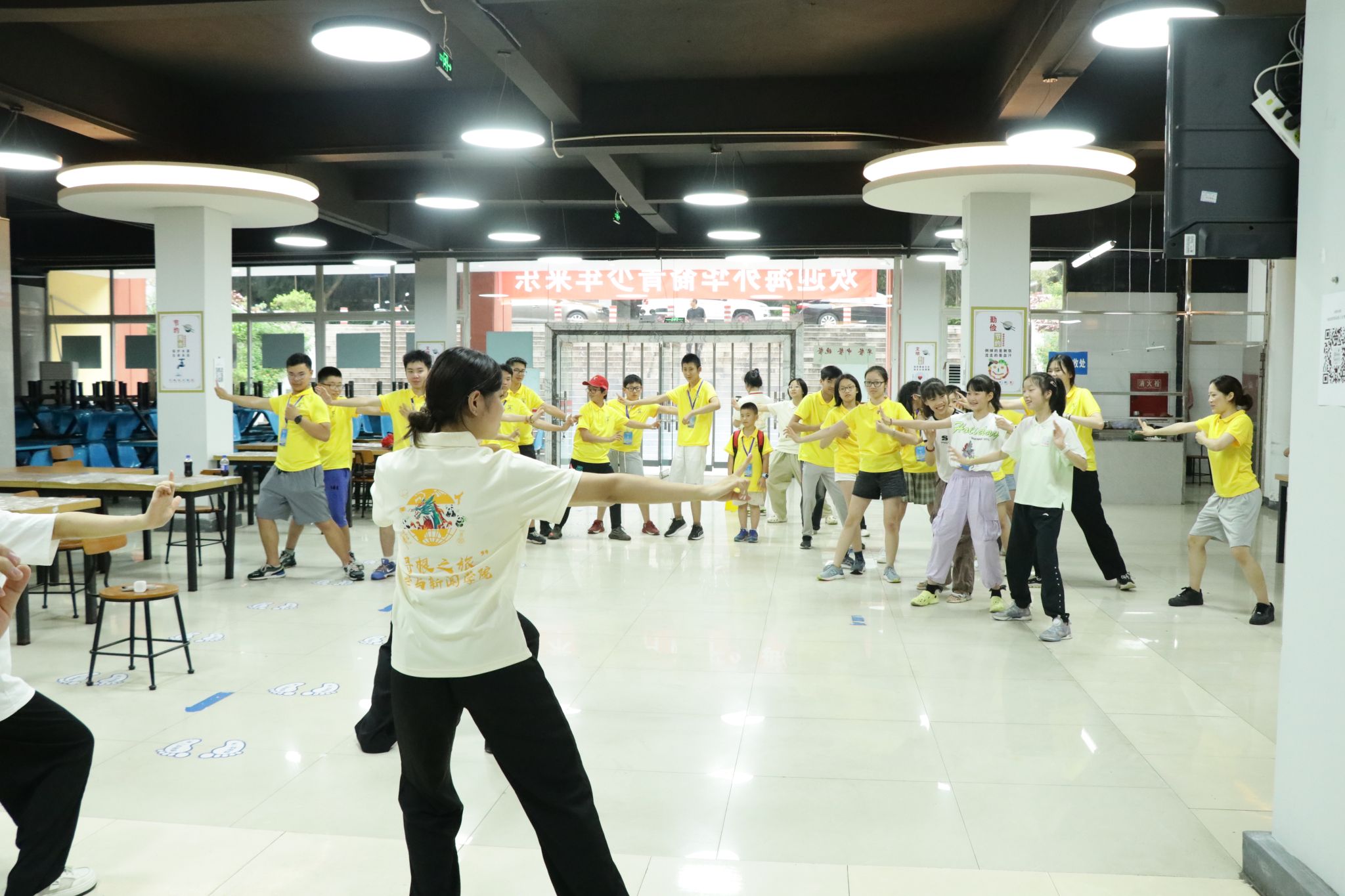 下午7点左右,队员们展示并教授八段锦,在古典而优雅的动作中,在舒缓的节奏中,让营员们,体验身心的宁静与和谐,感受中华传统文化的深厚底蕴。