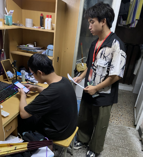 会议结束后,学生处组织公寓民主委员会暑期值班同学开展了查寝工作,学生处副处长陈勋玮在查寝过程中就相关工作提出了要求,他表示,暑期值班人员要以高度负责的态度对待该项工作:一是要加强宣传教育,提高留校学生的安全意识和防护能力;二是要掌握学生公寓动态信息;三是要敏捷管理,有效应对各类突发事项。