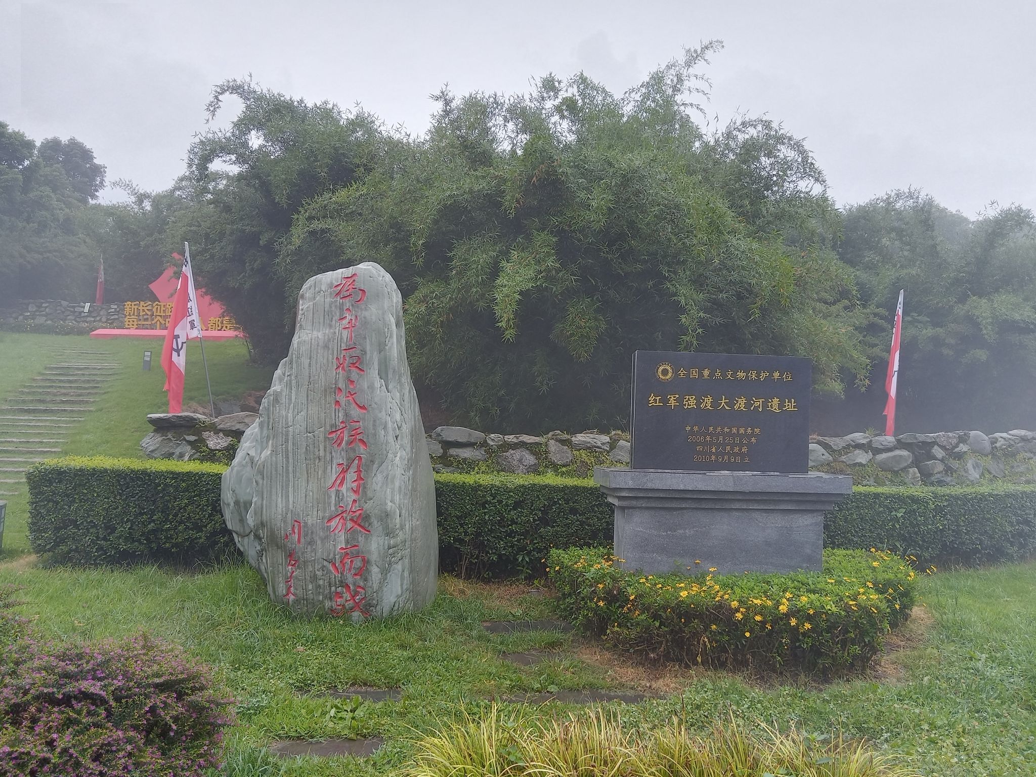 站在红军强渡大渡河纪念碑前,仿佛能听到历史的回声。这座由邓小平同志题写的纪念碑,矗立在广场中央,庄严而肃穆。纪念碑上雕刻着红军战士的头像,下方是十七名勇士冒着枪林弹雨、战惊涛骇浪的浮雕,每一笔都诉说着当年的艰难与壮烈。