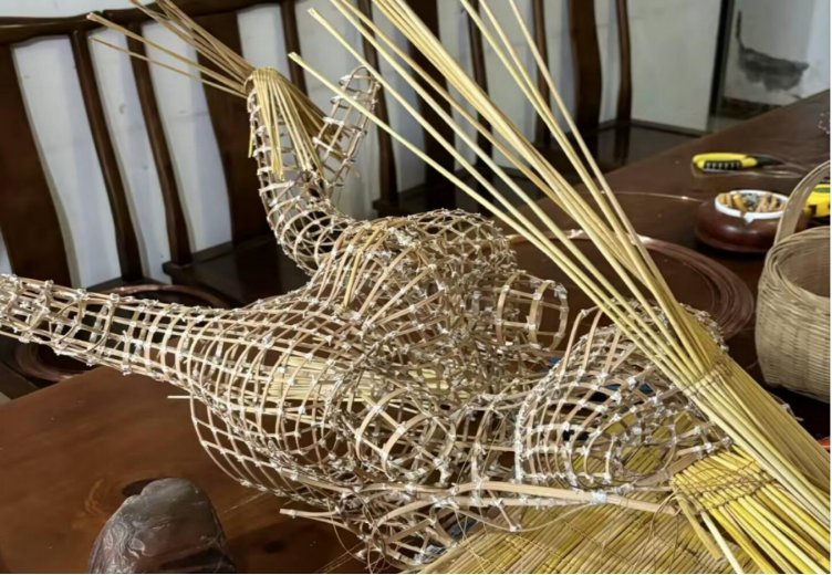 志愿者们有幸拜访了沐川草龙传承人陈焕彬,走进陈老师的工作室,墙上挂满了草龙成品展示图,让志愿者们近距离感受到了这项古老技艺的魅力和传承的艰辛。陈老师在采访中提到,草龙制作需要十分有耐心,两人完成一条50米的草龙需要花费七个月左右的时间。可见草龙艺术品的匠心独运。