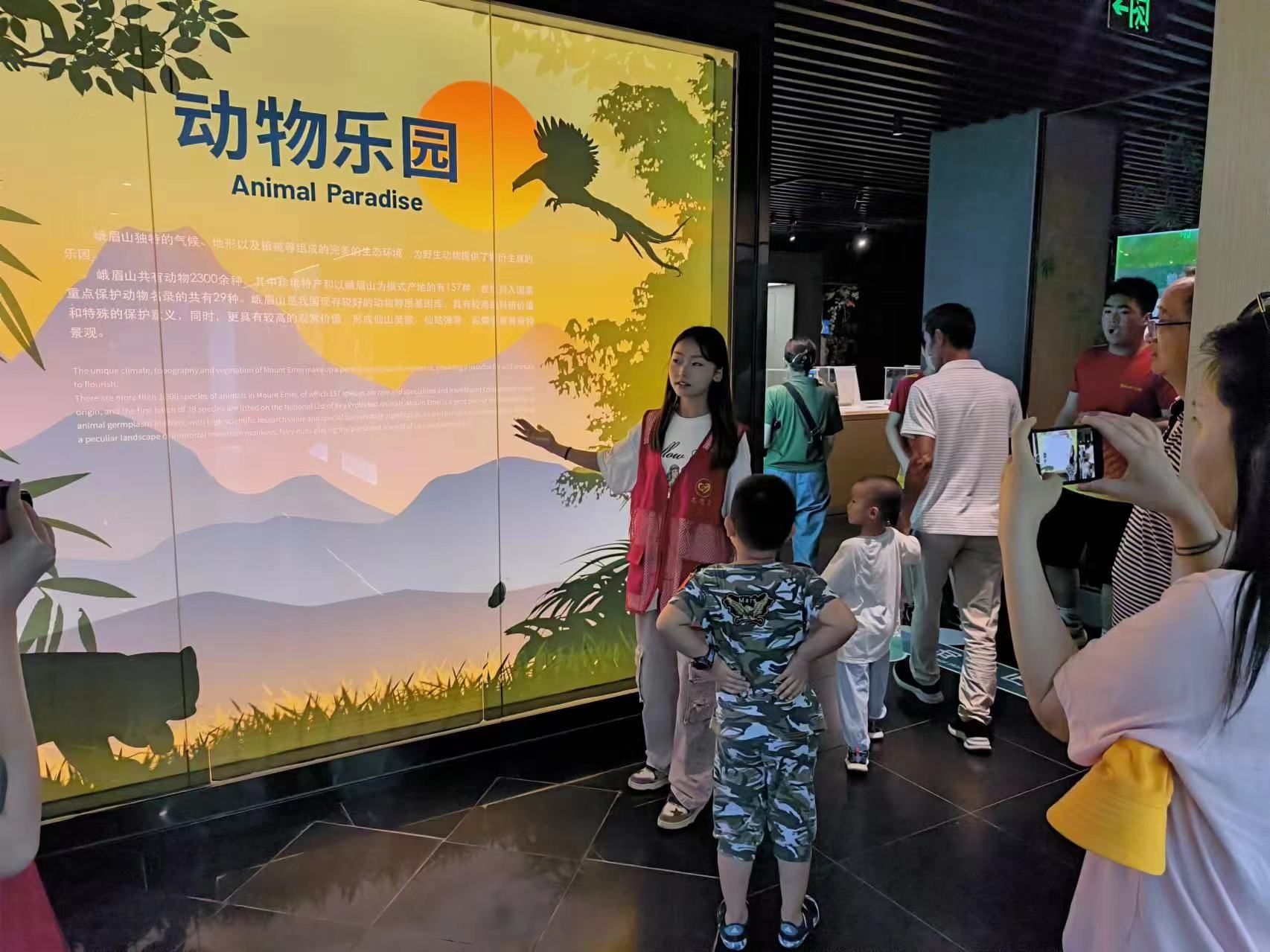 为了将峨眉山文化的魅力传递给更多的人,实践队在接下来的四天里深入峨眉山腹地进行实地考察、访谈和科普宣传等实践活动,并于7月9号重返博物管开展了志愿讲解服务。他们身着统一的志愿者服装,穿梭在博物馆的各个展厅之间,用生动的语言和饱满的热情向游客们讲述着峨眉山的故事。他们的讲解有效帮助到游客们了解峨眉山的历史文化,更感受到了中华优秀传统文化的博大精深与独特魅力,获得游客和馆方一致好评。