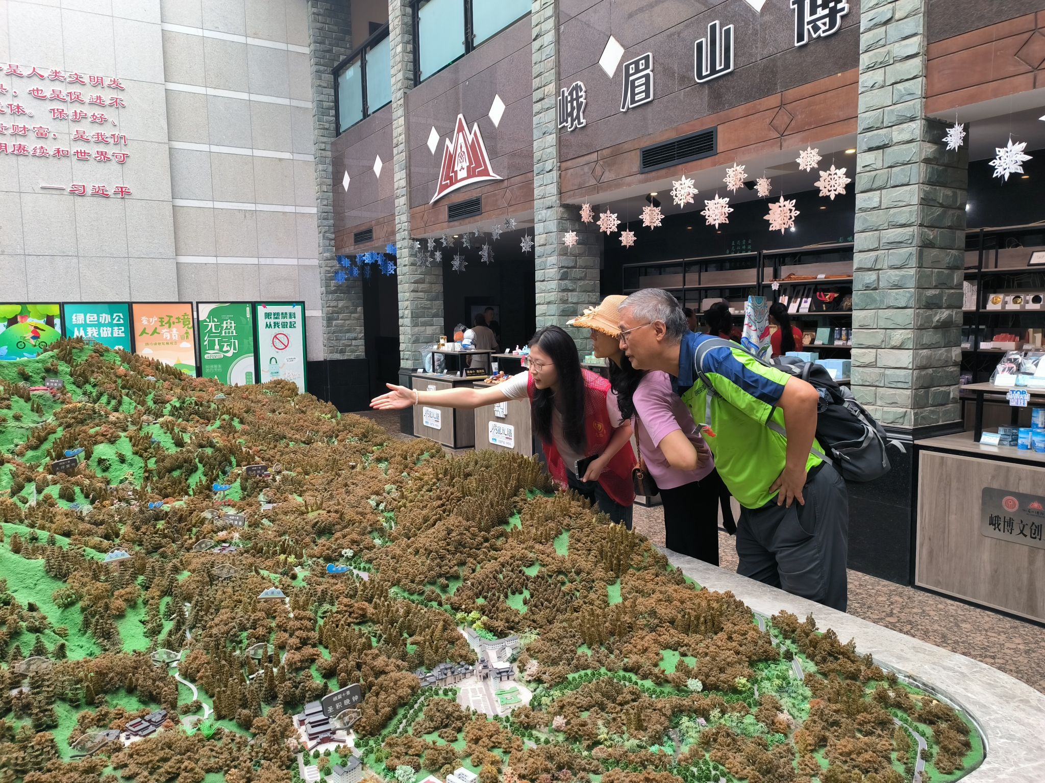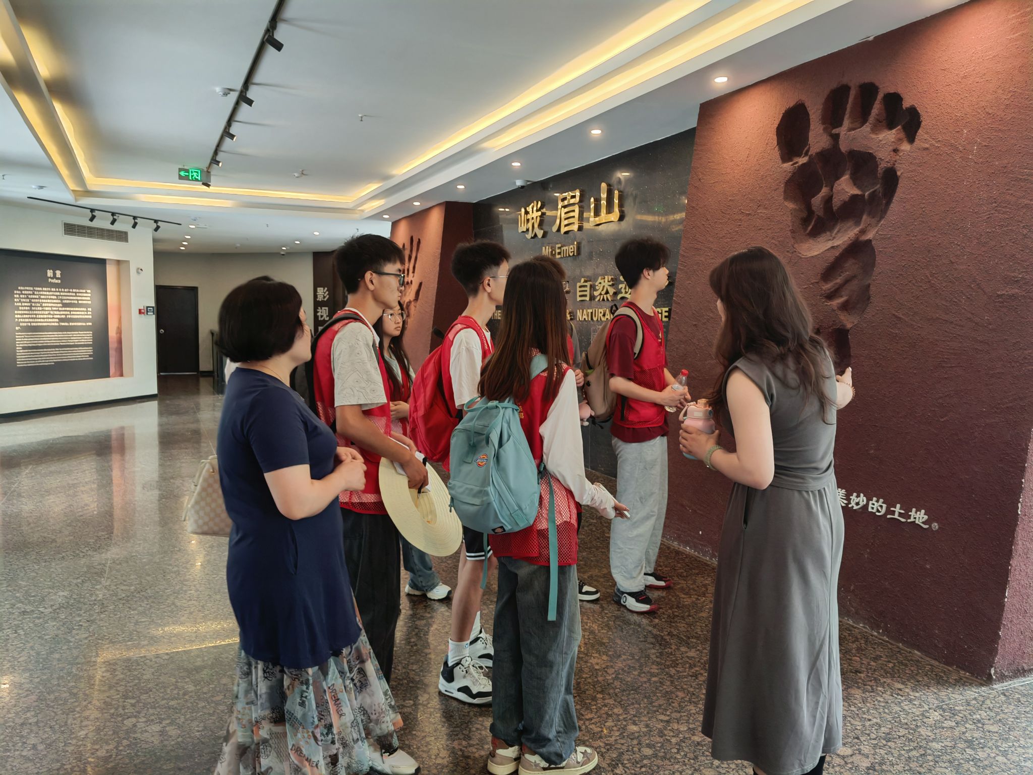 峨眉山博物馆展出的主题是峨眉山世界自然与文化遗产,这座位于峨眉山风景区报国寺内的文化宝库,自2001年5月建成以来,便成为了无数游客与学者探寻峨眉山文化的重要窗口。在博物馆内,队员们被一件件珍贵的文物深深吸引,从古老的佛教造像到精美的书画作品,从珍稀的植物标本到丰富的地质资料,每一件展品都承载着峨眉山千年的历史与文化。为了更深入地了解这些文物的背后故事,实践队特邀请博物馆的资深讲解员王琳进行了一场生动的导览。她以生动的语言、详实的历史资料,将峨眉山的历史脉络、文化底蕴和艺术特色娓娓道来。队员们听得入神,不时地提出问题,与讲解员进行互动交流。通过这次探访,队员们不仅增长了知识,更对峨眉山文化有了更深的理解和感悟。