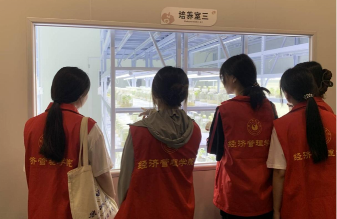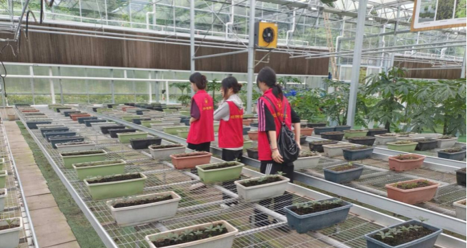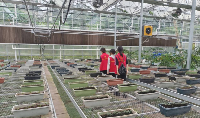 实践队员们在参观中药材培育室