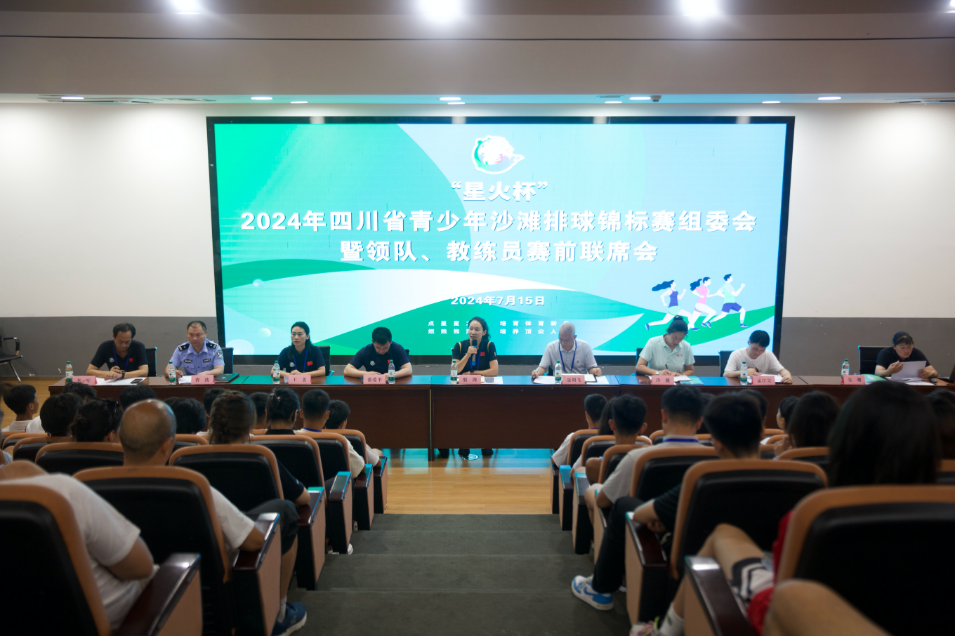 2024四川省青少年沙滩排球锦标赛组委会暨领队、教练员赛前联席会在乐山高新区嘉祥外国语卡塔尔世界杯决赛波胆预测 小学阶梯教室举行。四川省体育局青少年体育处处长殷剑,四川体育职业学院排球运动管理中心协助主任工作冷薇,乐山市体育局副局长聂朝飞,世界杯葡萄牙vs加纳波胆预测 公共体育教育中心专职副主任兼体育学院副院长、乐山市排球协会副主席张爱平,世界杯葡萄牙vs加纳波胆预测 体育学院党委副书记、纪委书记王美,大会裁判长朱珊,乐山市高新区公安分局巡特警大队大队长曹波,乐山市高新区融媒体中心孟江昊,赛事裁判员和各参赛队领队、教练员、运动员出席了会议,会议由四川省排球协会理事长、赛事管理委员会主任李军主持。