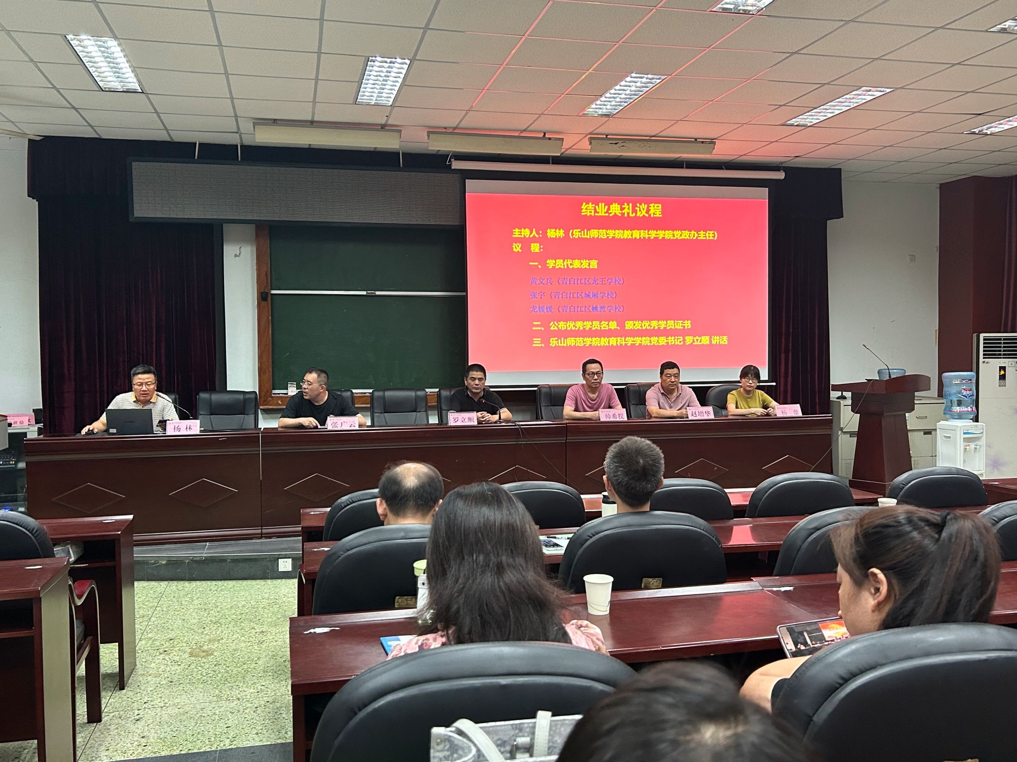 本网讯(文、图/李金婷)7月18日上午,由世界杯葡萄牙vs加纳波胆预测 教育科学学院承办的“2024年成都市青白江区中小学教师班主任专业素养培训”结业典礼在弘毅楼412教室举行。教育科学学院党委书记罗立顺、教师教育教研室主任张广云、教务与科研管理办公室主任帅希权、实验科科长赵增华、辅导员杨蕾及81名学员参加结业典礼,由学院党政办主任杨林主持。