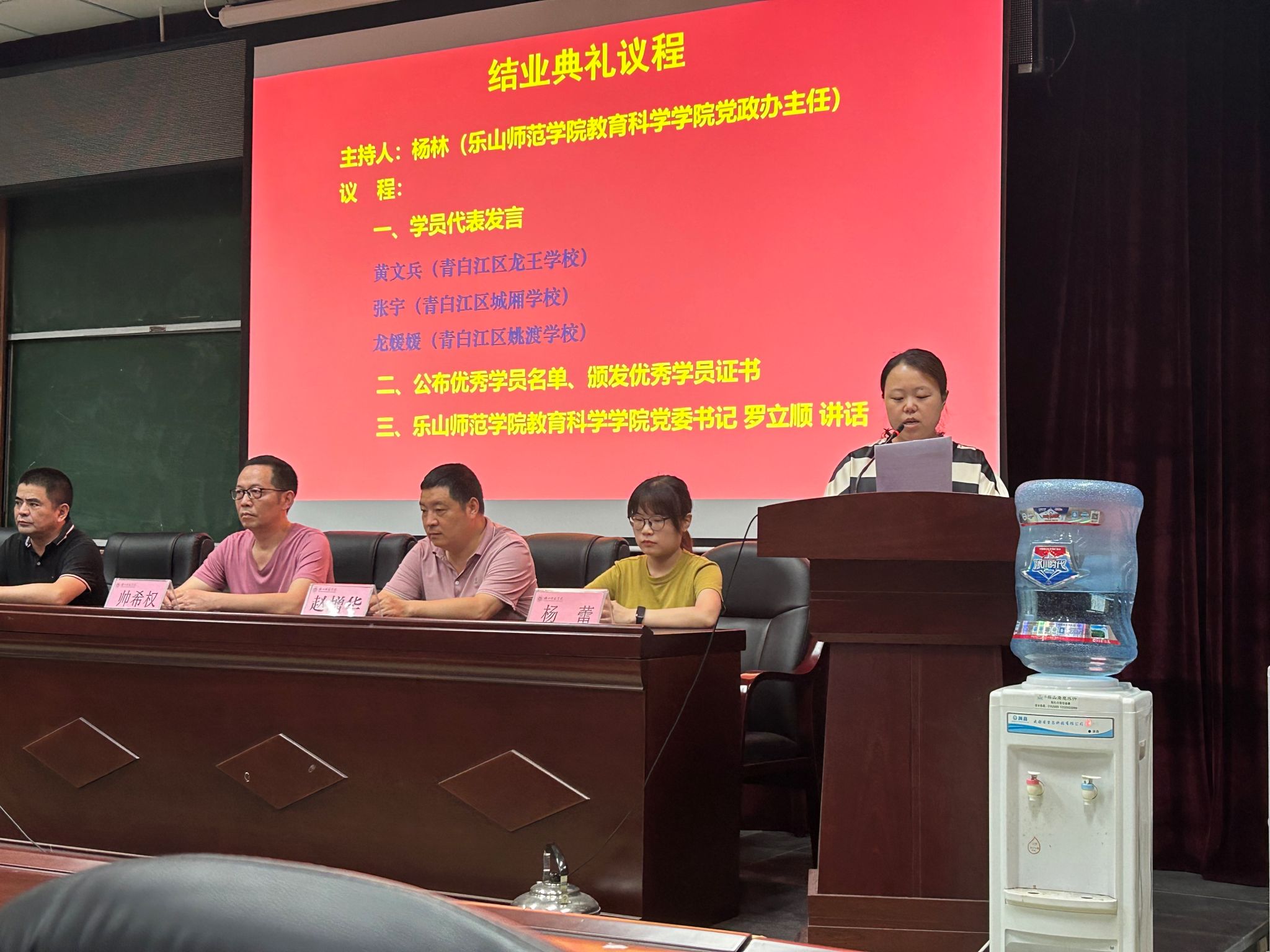 紧接着,杨林主任公布了此次培训的优秀学员名单,并对他们表示祝贺,同时也勉励其他学员,希望大家可以将此次培训所学到的内容运用到今后的教学实践中,不断提高教育教学水平。