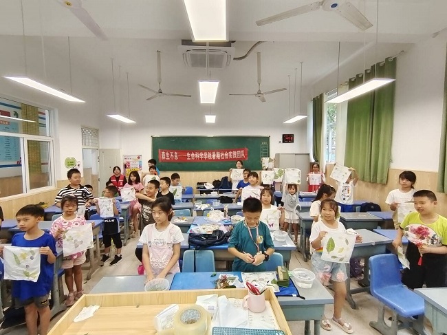 本网讯(文、图/冯春江)为增进社区儿童对植物的了解与认知、体验自然之美。7月17日,生命科学学院暑期社会实践团队赴徐家扁社区开展了“拓印绿意,生命之美”社会实践活动,让同学们更加深入地了解和欣赏自然之美,提升自然科学素养。
