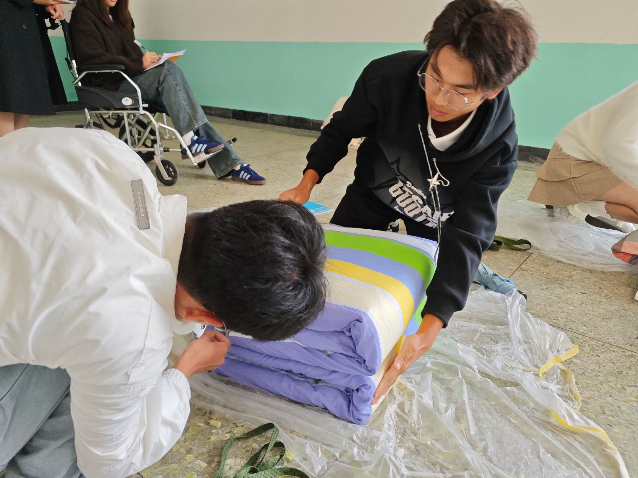 本网讯(文/李国庆 图/秦誉宁、杨顺福)为进一步强化纪律意识,营造良好生活风范。10月20日,新能源材料与化学学院在实训楼举办叠军被比赛,学生分会生活部承办此次活动。
