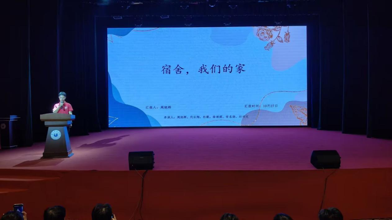 学生们热情参与并周密筹备,在经历了一个月的准备和学院的初赛选拔后,10间宿舍脱颖而出,晋级到了最终的决赛阶段。在决赛环节,每个参赛寝室的主讲者通过精心制作的PPT,围绕“宿舍标志”、“文化理念”、“宿舍公约”以及“成员特质”等方面进行了详细的介绍。紧接着,各寝室全体成员亮相带来才艺展示,内容丰富多样,包括合唱、舞蹈以及记录日常生活的Vlog等,生动呈现了宿舍成员之间的和谐与友谊以及他们洋溢的青春活力。最终,在激烈的竞争中,百六301寝室荣获一等奖,百六215等两个寝室获得二等奖,学九A511等三个寝室荣获三等奖,百六116等三个寝室荣获优秀奖。