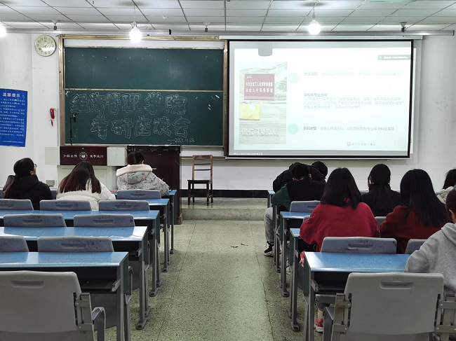 本网讯(文/董欣、图/杨文睿)为使考研学生有更清晰的规划,11月28日下午,经管学院于行知楼114教室召开了2019级考研学生座谈会,邀请了上一届考研成功的冯丽妃和洪盛两位同学在线上进行了经验分享和交流,2019级辅导员金蓉及2019级预备考研的学生参加了座谈会。