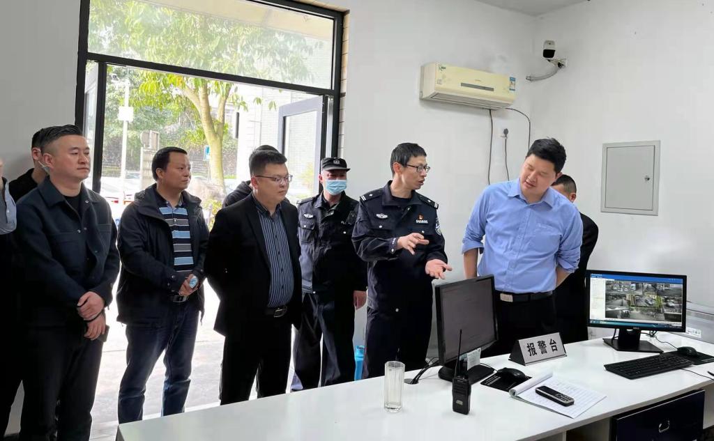 座谈会后,罗刚、梁光德陪同吴祖秧一行对我校警务室、征兵工作站、监控中心进行了实地参观。