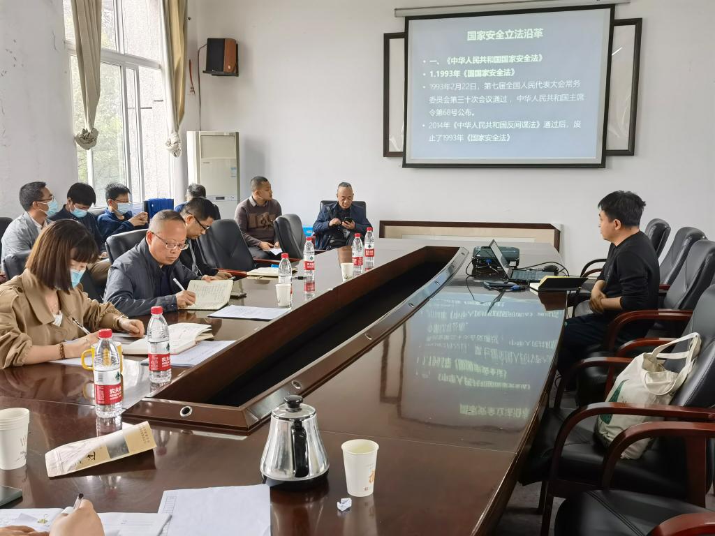 本网讯(文、图/刘梦佳)为了提高教师的法律意识,促进教师有效履行维护国家安全的法定责任和义务,法学与公共管理学院4月14日于博雅楼四楼会议室开展学习《国家安全法》专题讲座。本次讲座由法管学院党委书记程勇主持、法学博士赵勇老师主讲,全体班子成员及教师参与学习。
