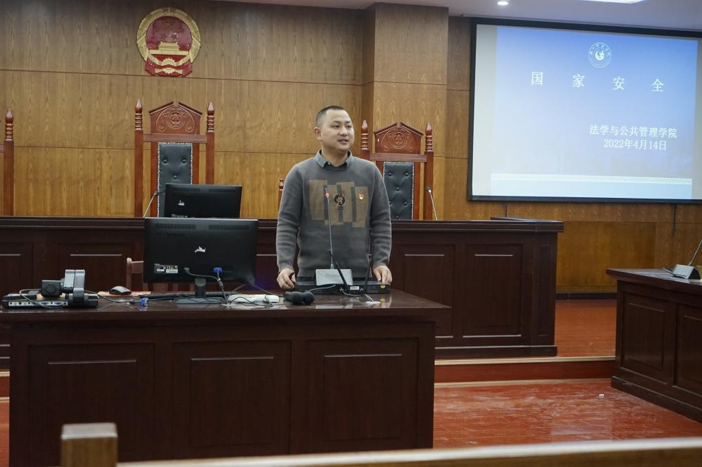 本网讯(文/杨兵 图/徐非)为进一步增强国家安全意识,提升学生干部维护国家安全的主动性,法学与公共管理学院于4月14日下午2:00在弘毅楼模拟法庭313开展了主题为“维护国家安全,筑牢人民防线”的知识讲座。参与讲座的有学院分党委书记程勇、副书记周琴、各年级辅导员、以及各年级学生代表200余人。