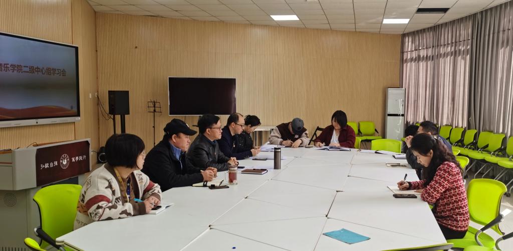 本网讯(文、图/毛敏)4月19日下午,音乐学院党委理论学习中心组在智慧教室开展“对标竞进、争创一流”专题学习。学院党委书记罗谊恒主持会议,党委理论学习中心组成员参加了学习会。
