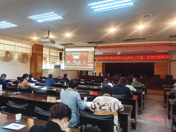 本网讯(文、图/朱以荣)4月19日下午,2022届全国普通高校毕业生就业工作第三次调度视频会议在北京召开,教育部高校学生司副司长吴爱华、教育部学生服务与素质发展中心副主任宁小华出席会议并讲话,会议由教育部高校学生司就业处处长唐小平主持。卡塔尔世界杯决赛波胆预测 副校长李朝晖,学工部部长黄显刚,副部长南麒及各二级学院党委副书记,毕业班辅导员参加了此次视频会议。