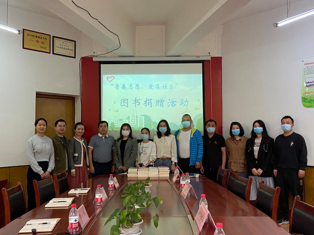 4月22日上午,校团委全体成员与牛咡桥社区、滟澜洲社区、斑竹湾社区、演武社区、新村社区代表一同举行了“青春志愿爱在社区”图书捐赠活动。李东首先向社区了解了学院与社区联系以及开展活动的情况,他表示:我校青年学子非常愿意到社区开展志愿服务活动,希望社区多提供平台与机会。接着,各社区代表对我校学生参与的童伴之家、儿童之家、社区暑假班、社区卫生清扫等志愿活动进行了介绍,对校团委党支部的捐赠行为,表达了最真诚的感谢。由青年志愿者服务中心、爱心社收集的1250本图书已安放至社区阅读室。