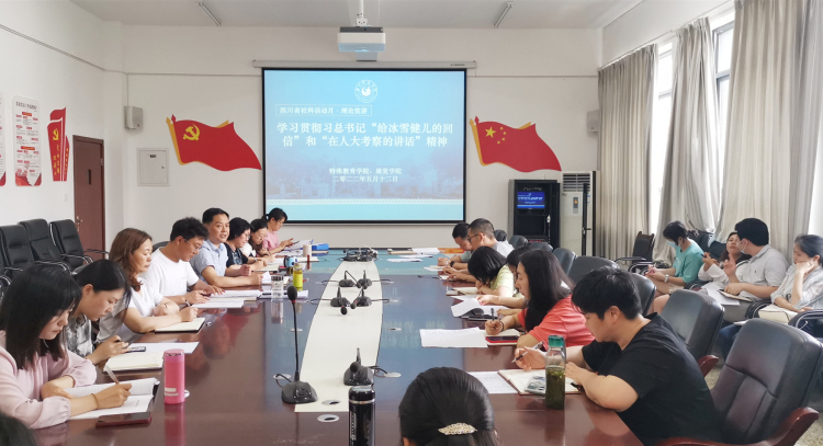 本网讯(文/王振洲 图/张敏)5月12日下午,特殊教育学院举行了年度第五次教职工政治理论学习会,专题学习贯彻习近平总书记“给中国冰雪健儿的重要回信”“在中国人民大学考察时的重要讲话”精神,学院全体教职工参加了学习。学习会由学院党委书记刘宗泉主持。