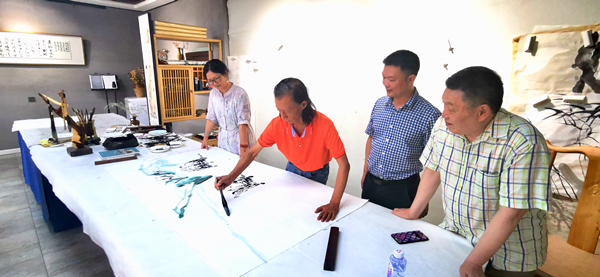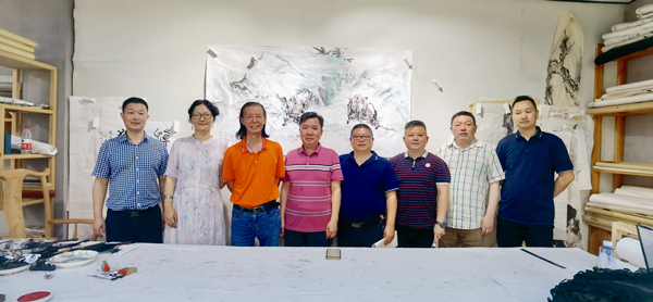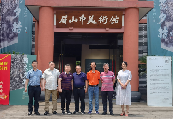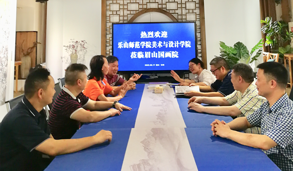 本网讯(文图/熊火花)2022年6月17日上午,世界杯葡萄牙vs加纳波胆预测 美术与设计学院熊泽文院长,熊火花副院长,学院教授李开能(乐山市美协主席),书法教研室主任杨德明、国画教研室主任高斌一行到眉山国画院开展交流活动。眉山国画院吕应鑫院长,常务副院长袁泉(眉山市美协主席)、兰华副院长陪同参观了眉山市美术馆,并在眉山国画院书画创作室开展笔会艺术交流。