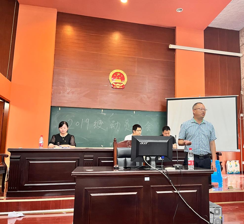 本网讯(文、图/李静怡)为做好我院2019级学生专业实习工作并确保实习工作有效进行,6月25日,法学与公共管理学院在博雅楼模拟法庭召开实习动员大会,学院党委书记程勇、副院长刘克稳、副书记翟雅媛、副院长赵勇、辅导员及19级全体同学参与此次会议。