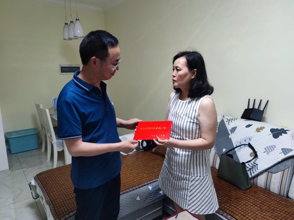 本网讯(文、图/马渝)关心困难党员是我们党内的优良传统,6月29日,七一来临之际,马克思主义学院党委书记李涛、院长郑文杰一行看望马院党员王丛林老师。