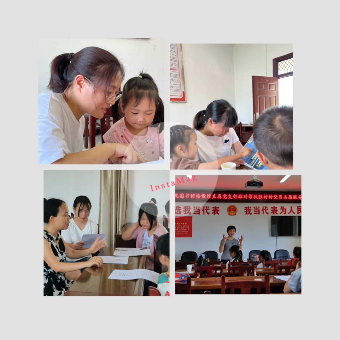 本次党员志愿服务活动团队是由图书馆档案馆直属党支部四个党小组的党员志愿者代表组成,以阅读为手段,通过开展丰富多彩的活动,用陪伴关爱乡村孩子,以文化助力乡村振兴。该团队面向暑期留守在张村村的幼、小、初学生主要开展了绘本阅读、诗词赏析、古诗咏唱、科普实验、安全教育,将历史人文素养与体育活动、音乐舞蹈等有机结合,寓教于乐。