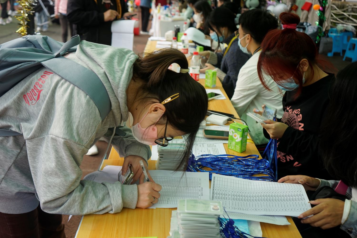 学院学生干部提前便筹备好迎新工作,志愿者们也准备就绪。迎新当天,小班们和志愿者们早早地来到了迎新大本营及各大校门口,在各自的点位上随时待命,以便为新同学的到来做好服务工作。迎新工作如火如荼,到处都是忙碌的身影,志愿者们分工明确,热心相助,主动帮助刚到校的新生拎行李,为他们指路,带领他们做核酸、报道、录入信息,并解答他们的疑惑,一路谈笑风生。领导们的关怀使志愿者们热情高涨,始终以积极温和的态度帮助新生,他们高效的办事效率,使迎新工作有序进行,迎新氛围浓厚热烈,人头攒动,秩序井然。