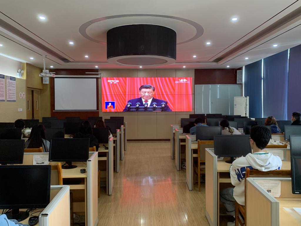 本网讯(文/曹琳、图/余瑶)10月16日,中国共产党第二十次全国代表大会在人民大会堂开幕,习近平同志代表第十九届中央委员会向大会作报告。数理学院组织师生代表分别在学院会议室、实训楼608教室收看了党的二十大开幕会盛况。